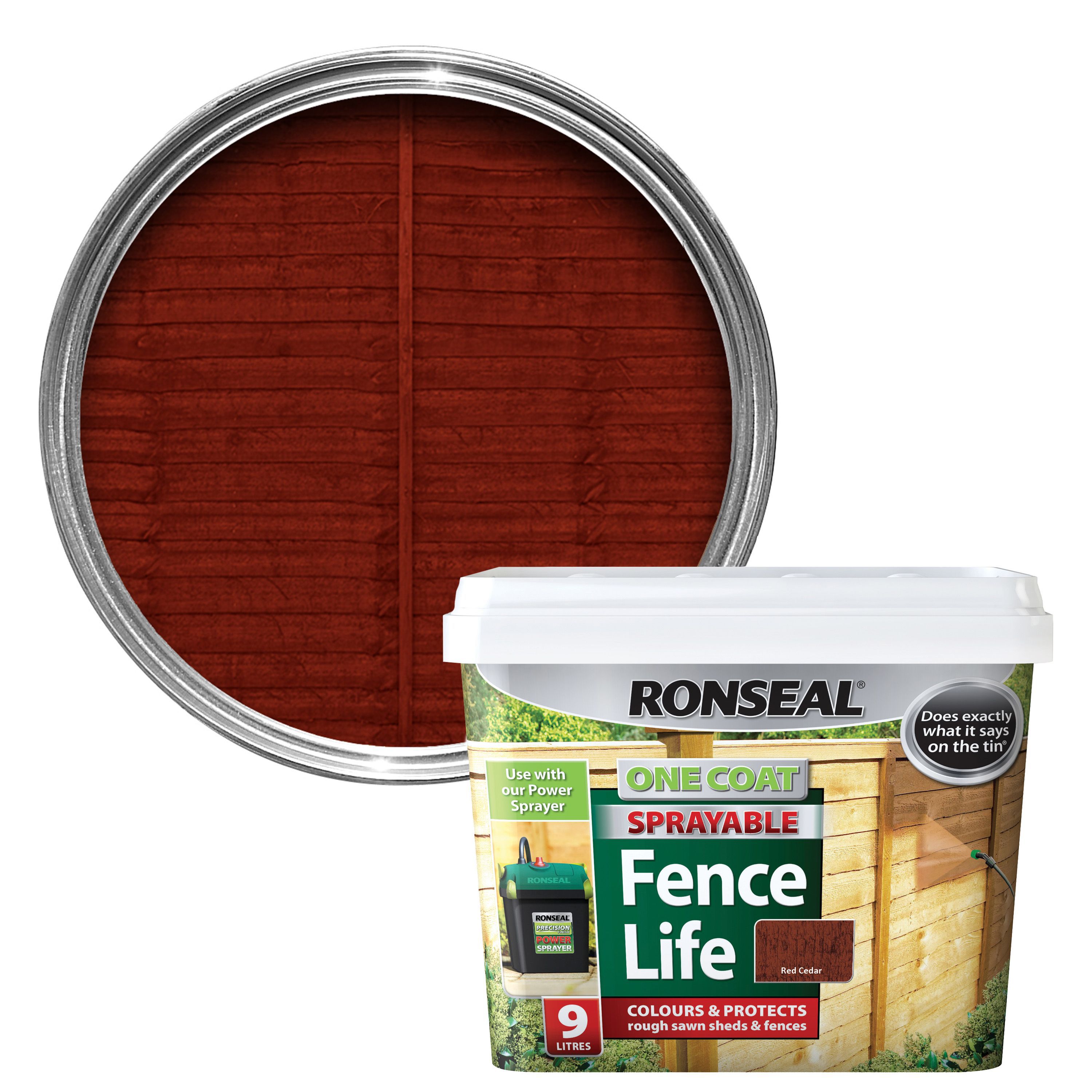 Ronseal one coat fence life red cedar matt fence shed wood treatment 9l product code.