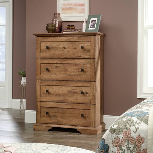 Made with a sturdy wood frame this four drawer dresser offers convenient storage for clothing linens and bedroom accessories in addition to having a clean and versatile design.
