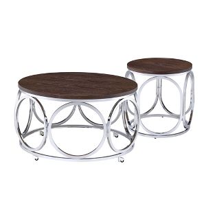 Amazon Com Acme Elwyn 2pc Coffee Table Walnut Brushed Nickel Furniture Decor