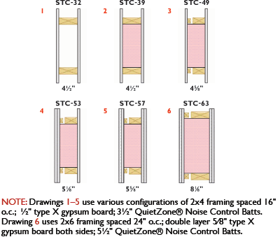 A typical interior 2 4 wall with 1 2 of drywall on both sides has a rating of stc 34.