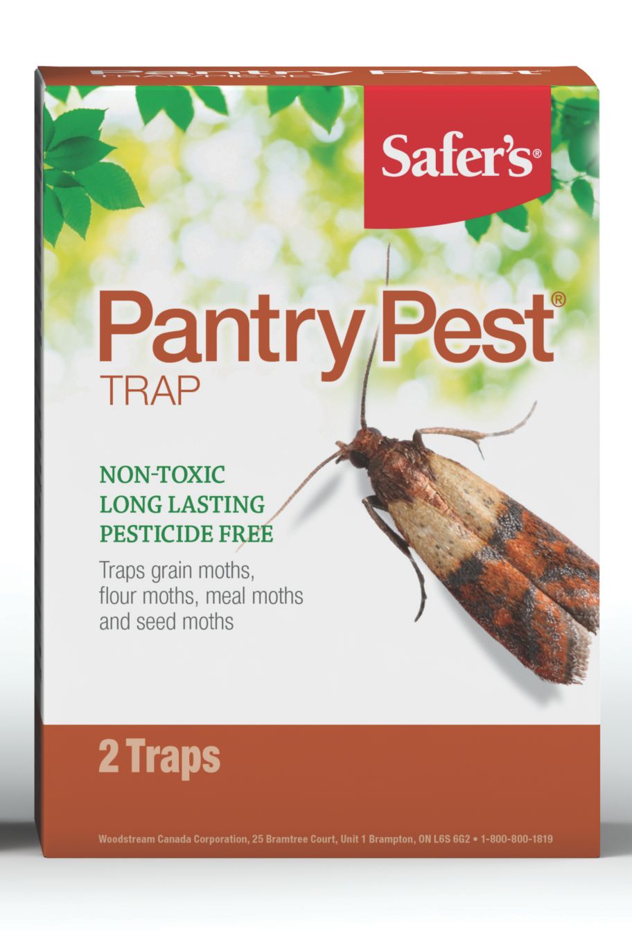 The safer brand pantry pest trap lures and traps meal moths grain moths flour moths and seed moths that infest kitchen cupboards dry food pantries and other food storage areas.