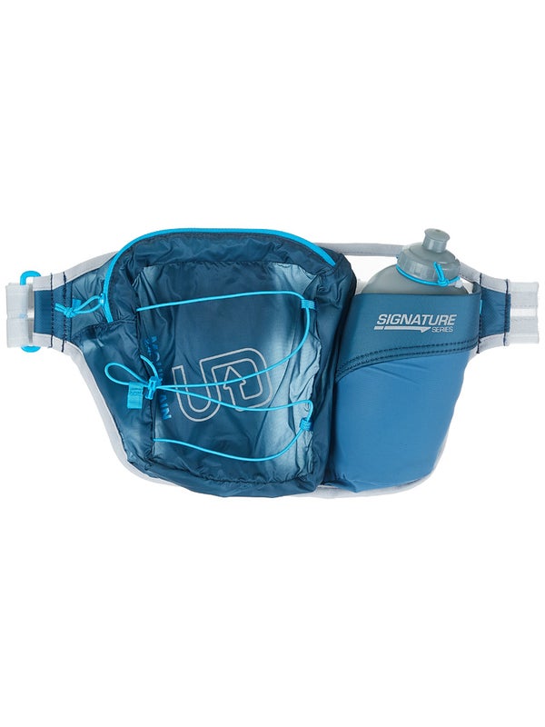 This hydration belt features a flexible insulated bottle pocket zippered access external storage pocket and is crafted from pvc free 210d double ripstop papu.