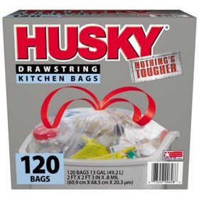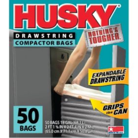 The husky drawstring trash compactor bags 18 gallon 50 ct available at sam s club are just the right size to fit on your compactor and can hold a significant amount of trash at once.
