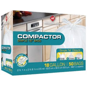 The member s mark drawstring trash compactor bags 18 gallon 50 ct available at sam s club are just the right size to fit on your compactor and can hold a significant amount of trash at once.