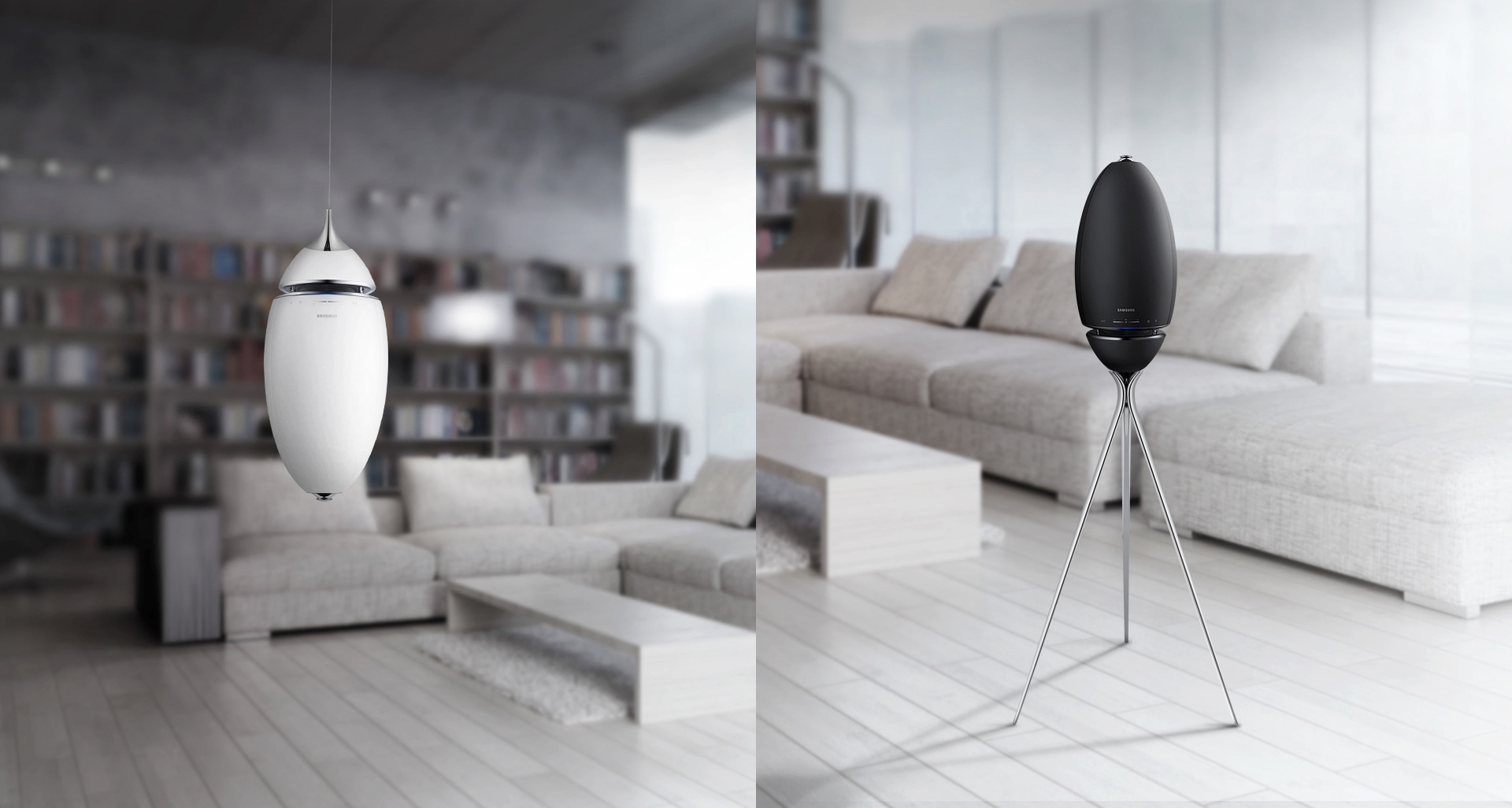 The sleek aerodynamic rounded design and variety of stylish finishes of the wireless audio 360 seamlessly match with any home interior.