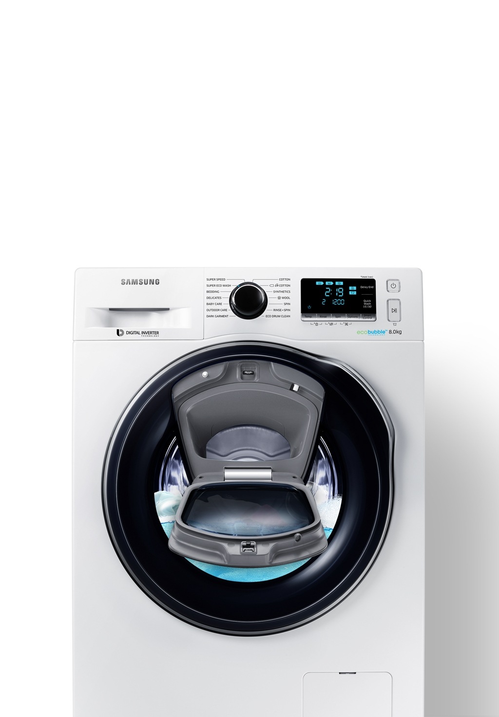 Samsung wf702w2bcbq 7kg washing machine price in pakistan baby care led display durable diamond drum fuzzy logic control eco bubble technology.